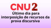 27/01/2026 16h01 CNU 2: último dia para interposição de recursos da prova discursivaCandidatas e candidatos da segunda edição do Concurso Nacional Unificado devem apresentar pedidos de revisão até o fim do dia de hoje, exclusivamente pelo site da FGV | |
