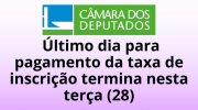 28/01/2026 14h17 Concurso Câmara dos Deputados: último dia para pagamento da taxa de inscrição termina nesta terça (28)Candidatos devem quitar a GRU até as 18h para garantir a confirmação da inscrição no certame organizado pelo Cebraspe | |