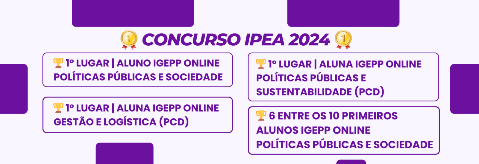 "Olá!! Estou escrevendo para agradecer pela minha experiência com vocês. Nunca tinha me preparado para nenhum concurso antes, minhas primeiras provas "para valer" foram APPGG-SP, Ipea e APO, todas estudando com o Igepp online. Tive o privilégio de passar em primeiro lugar para APPGG, além de ter sido aprovado em nono lugar (AC) no Ipea, na área de Políticas Públicas e Sociedade. Já no concurso para APO - ainda em andamento -, obtive, empatado com mais alguns candidatos, a terceira maior nota na primeira fase (provas objetivas) em minha especialidade.